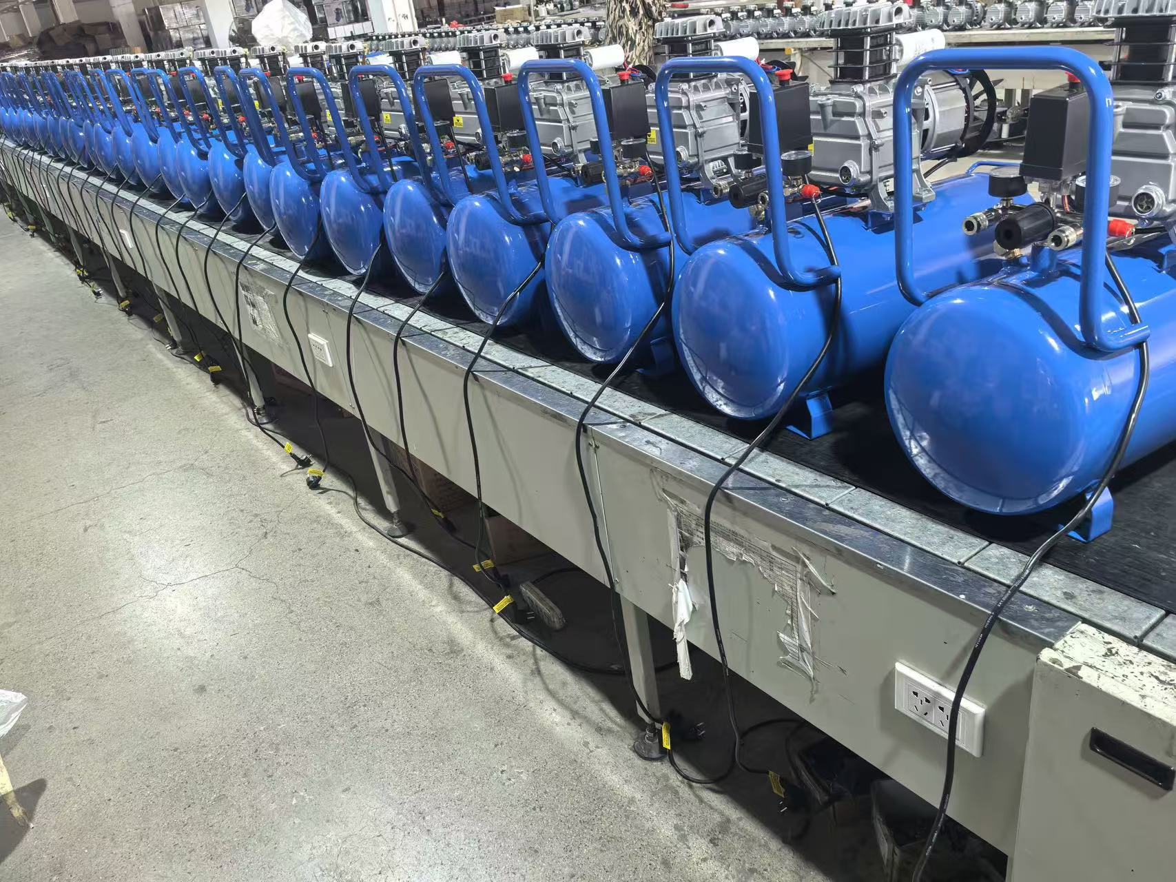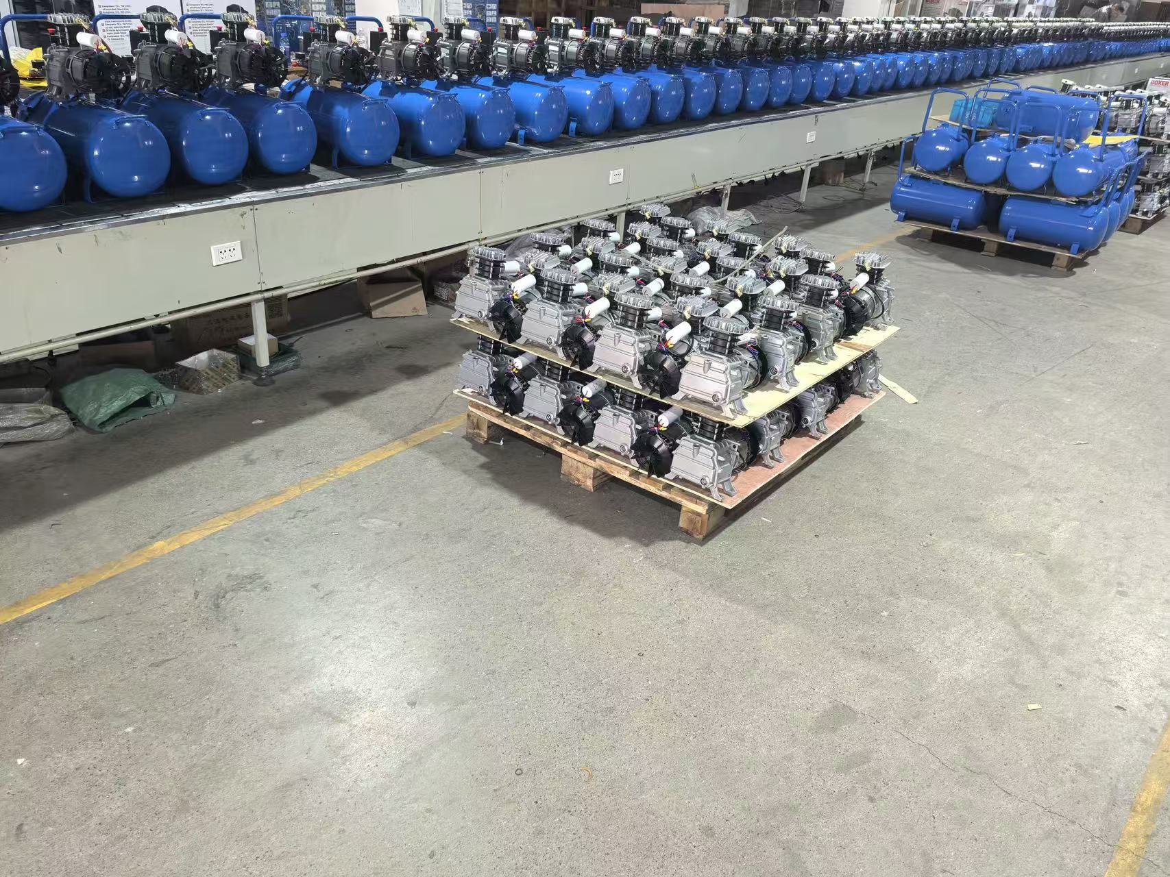 At the end of January, our 50L direct-drive air compressors entered the final quality inspection stage before shipment. In the production workshop, the compressor units and air tanks awaiting inspection were neatly arranged. Workers were meticulously verifying the equipment’s operating status, airtightness, and various performance indicators according to standard procedures, ensuring that each product was in optimal working condition before delivery to the customer.